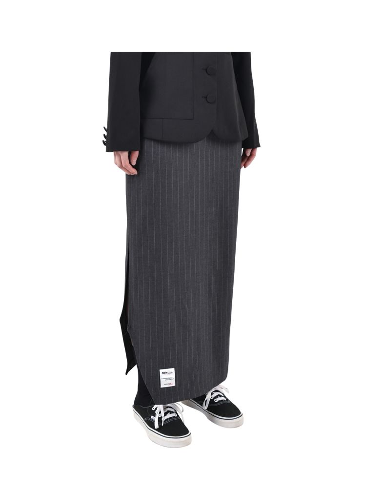 [스트레이트 체형 추천] 핀스트 컷팅 롱스커트 그레이