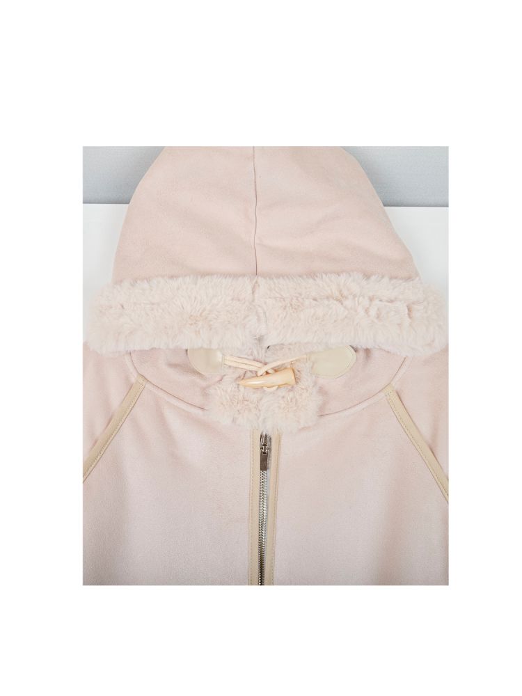 부드러운 촉감의 밍크털 원단으로 제작된 후드 무스탕입니다.