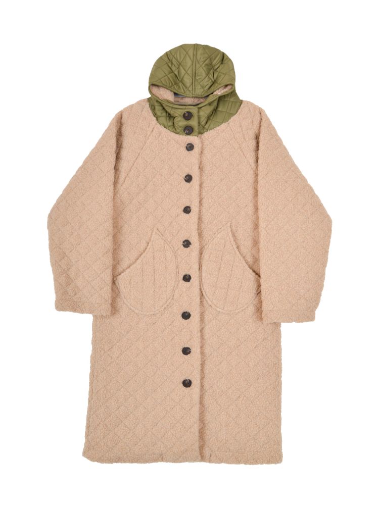 플리스 후드 패딩코트 베이지 ONE SIZE